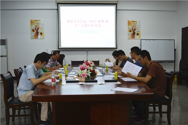 5月14日下午,kaiyun开云官方网站在第三教学区普照楼法律诊所举办首届“助学•筑梦•铸人”主题宣传活动。kaiyun开云官方网站常务副院长王晓丽、kaiyun开云官方网站党总支副书记黄伟斌、系主任李秋实等老师担任评委以及学生代表参加了本次活动。