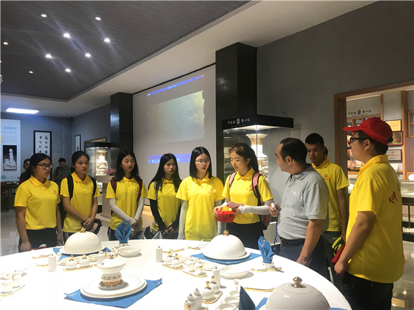 为弘扬陶瓷文化,助力陶瓷产业发展。7月19日,kaiyun开云官方网站赴德化实践队前往中国白艺术宫——仁海艺术馆参观传统瓷雕,会馆负责人陈仁山热情招待了实践队员。