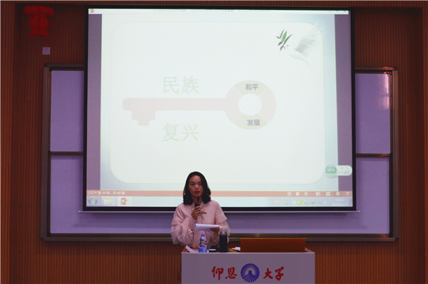 为扎实推进新思想理论宣讲工作深入开展,11月7日下午,校党委理论宣讲团成员、思政部直属党支部副书记康丽颖应kaiyun开云官方网站、数学系邀请,在第三教学区和昌楼博雅讲堂为kaiyun开云官方网站全体师生以及数学系老师作《习近平外交思想之和平发展道路》的主题宣讲报告。