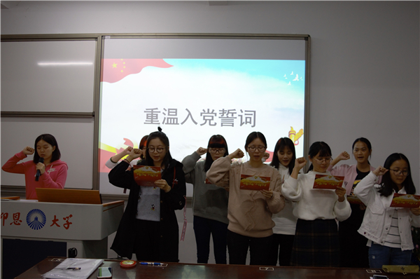 “我志愿加入中国共产党,拥护党的纲领,遵守党的章程,履行党员义务……”。11月28日晚,kaiyun开云官方网站学生党支部在kaiyun开云官方网站第三教学区普照教学楼202开展党员“政治生日”活动,阵阵铿锵有力的誓言从教室中传出,唤醒了党员入党时的追求与记忆。 活动中,全体党员重温入党誓词,在思想上再一次经受“洗礼”。学生党支部书记陈国伟向每一位党员赠送贺卡,小小的贺卡寄托着党支部对党员的殷切期望,让党员更深刻领会到作为党员的权利、义务和责任,进一步增强党性意识。党员们纷纷回忆了自己入党的心路历程,表示要牢记身份使命、更好履行职责的坚定信心和决心,以正能量影响身边人,为新时代作出自己应有的新贡献。 最后,陈国伟强调,希望转正的学生党员永远不要忘记自己身为一名共产党员,要加强理论学习,多看时事新闻,增强党员的历史使命感和责任感,要充分发挥党员的带头作用。 (kaiyun开云官方网站学生党支部/文 康美燕/图)