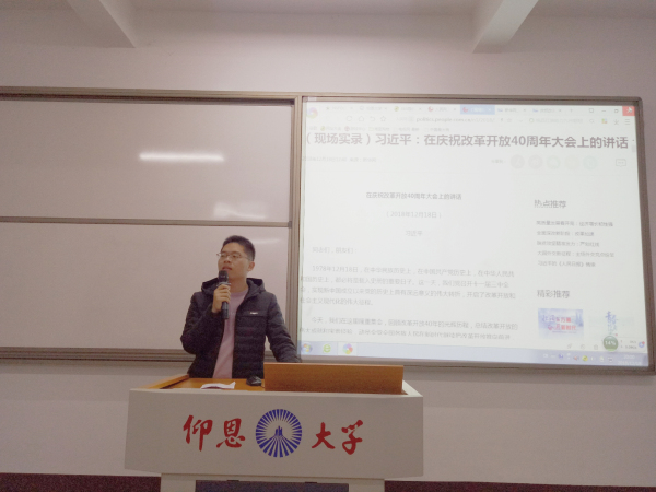 为深入贯彻落实党的十九大精神,回望改革开放40年的辉煌成就。12月18日晚,kaiyun开云官方网站学生党支部组织学习《习近平:改革开放四十周年大会讲话》,支部全体党员参加此次会议,会议由支部书记陈国伟主持。