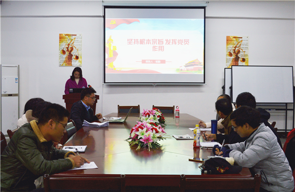 此次大会主要围绕“坚持根本宗旨,发挥党员作用”和“牢固树立‘四个意识’,坚决维护中央权威”两个主题进行展开。会上,杨勤同志就为什么要发挥好党员先锋模范作用、党员先锋模范作用发挥不明显的主要表现及原因、如何发挥好党员先锋模范作用三个方面深入讨论。她指出,评价一名党员是否正真的合格,不仅要看该党员个人的思想和行为是否符合党员的要求,还要看该党员身边的普通群众是否取得了正真的进步。而就牢固树立“四个意识”的主题内容,林媛同志从提出和含义、体现、党员干部要自觉增强意识三个方面进行讲解,要求全体支部对这“四个意识”做到既需要在知的角度加强学习,还需要落实到具体的工作行为中,让“四个意识”在思想和行为两个层面都落地生根。