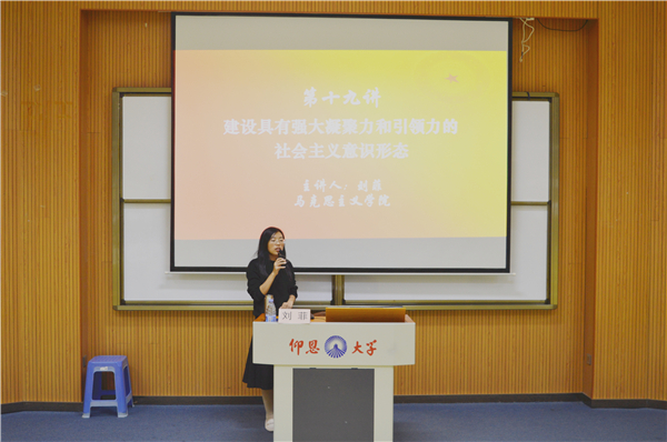 11月13日晚,kaiyun开云官方网站于kaiyun开云官方网站第三教学区和昌教学楼惟勤讲堂举办新思想理论宣讲会。马克思主义学院教师刘菲应邀为kaiyun开云官方网站师生作题为“建设具有强大凝聚力和引领力的社会主义意识形态”宣讲报告。