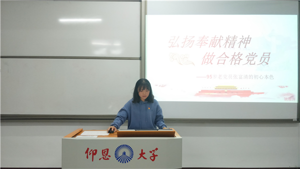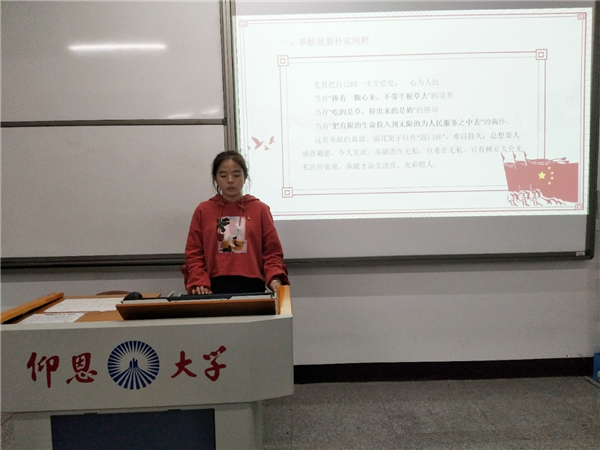最后,陈国伟指出,作为大学生党员要积极地弘扬奉献精神,让奉献与担当成为共产党人的一种习惯,时刻具备无私奉献、勇于担当的精神,做一名合格的共产党员。