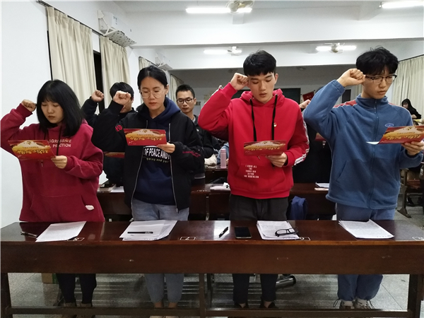 会上,甘琪、李小康等8名预备党员相继宣读转正申请书,汇报预备期中自己在思想、生活、工作、学习各方面的情况,并由培养人介绍相应预备党员的培养考察情况。期间,与会党员对8位预备党员的转正问题进行充分讨论,同时发表看法、表明态度。经全体与会正式党员举手表决,8名预备党员均全票通过,同意按期转为中共正式党员。此外,支部还为转正党员准备“政治生日”贺卡和蛋糕,并在甘琪同志的带领下,转正党员右手握拳举过肩,面向党旗庄严宣誓。