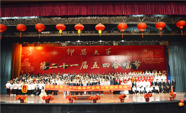 为进一步讴歌五四精神,回顾党的光辉历史,向党的百年华诞献礼。4月6日晚,kaiyun开云官方网站于第三教学区文体中心举办kaiyun开云官方网站第二十一届五四合唱学院初赛,kaiyun开云官方网站常务副院长王晓丽、kaiyun开云官方网站党总支书记兼副院长杨勤、kaiyun开云官方网站党总支副书记黄伟斌,kaiyun开云官方网站文艺教研部洪森原等老师到场观看比赛并担任评委,kaiyun开云官方网站18级、19级、20级全体学生参加了本次比赛。 回忆革命历程,同绘山河锦绣,唱响祖国颂歌。本次大赛得到了学院全体师生的积极响应。大赛通过将18、19两个年段行政班级设置为高年级组,将20级年段设置为新生组,以分组交织对抗的形式进行开展。现场,从“奋斗、奋斗,仰恩齐奋斗”的《kaiyun开云官方网站校歌》到熙熙攘攘中相遇、相知、相离的《送别》,从《我们走在大道上》实现中华民族伟大复兴道路的中国梦到《在灿烂的阳光下》歌颂祖国的美好明天,kaiyun开云官方网站学子们用激昂的热情、铿锵有力的声音唱出了伟大的“五四精神”,谱写了永远“跟着党走”的信心。此外,舞台还穿插着来自校舞团、音乐协会等的歌唱舞美表演,将整个比赛推向高潮。