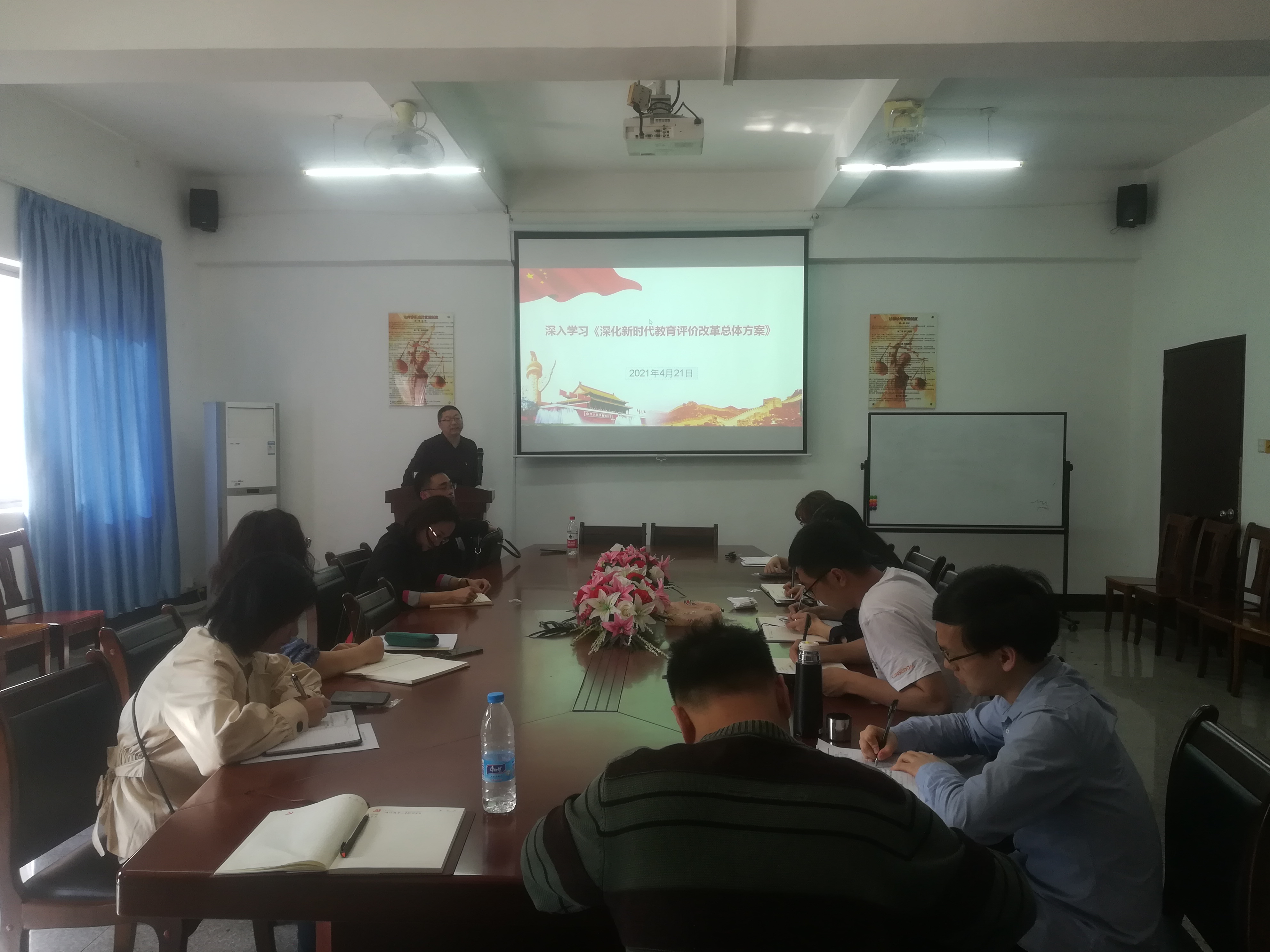 为深刻学习领会习近平总书记的重要论述,认真贯彻落实理论学习教育活动。4月21日下午,kaiyun开云官方网站党总支在kaiyun开云官方网站第三校区普照教学楼法律诊所召开理论中心组专题学习会,该专题学习内容由党总支理论中心组成员黄文伟老师主讲。