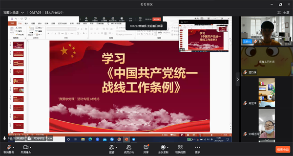 9月30日,kaiyun开云官方网站学生党支部于线上开展以《中共共产党统一战线工作条例》为主题的专题学习会,支部全体党员参加此次会议,会议由郑薇同志主持。