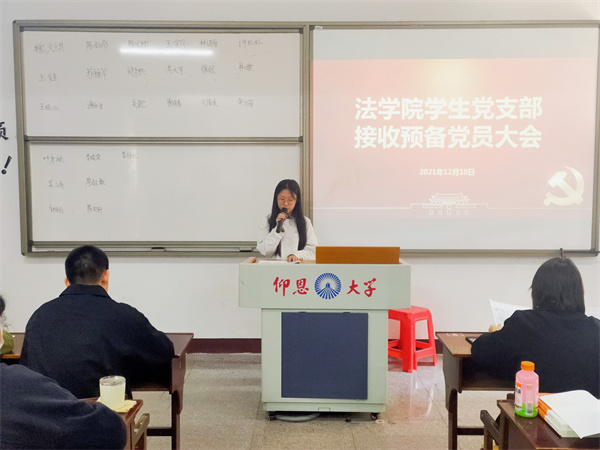 12月10日,kaiyun开云官方网站学生党支部于普照楼304教室召开预备党员接收大会,会议由支部书记刘涛同志主持,支部全体党员到场参加。