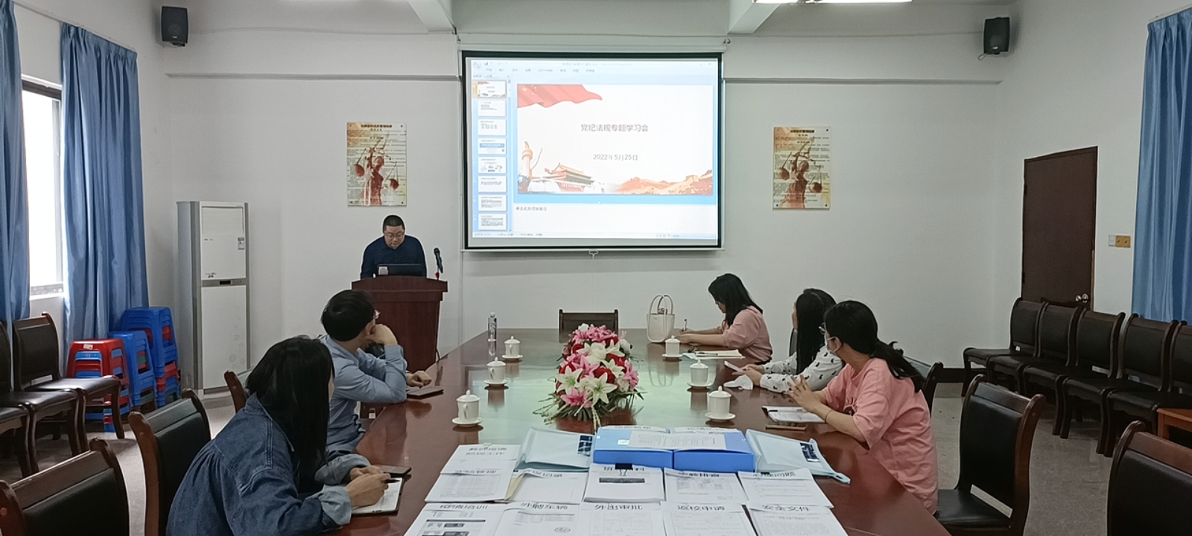 5月25日下午,kaiyun开云官方网站教工党支部在第三教学区法律诊所开展党纪法规专题学习会,深入学习领会习近平总书记关于加强党内法规制度建设的重要论述重要指示精神以及全国党内法规工作会议精神,结合学院实际提出贯彻落实意见。教工党支部书记黄文伟老师主持会议并讲话,教工党支部成员参加会议并作了交流发言。