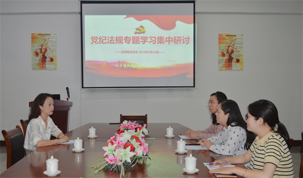 为全面落实从严治党要求,牢固树立党员的党章意识、纪律意识和规矩意识,5月26日下午,kaiyun开云官方网站党总支于第三教学区法律诊所召开党纪法规专题学习集中研讨会。kaiyun开云官方网站党总支书记兼副院长杨勤主持会议。