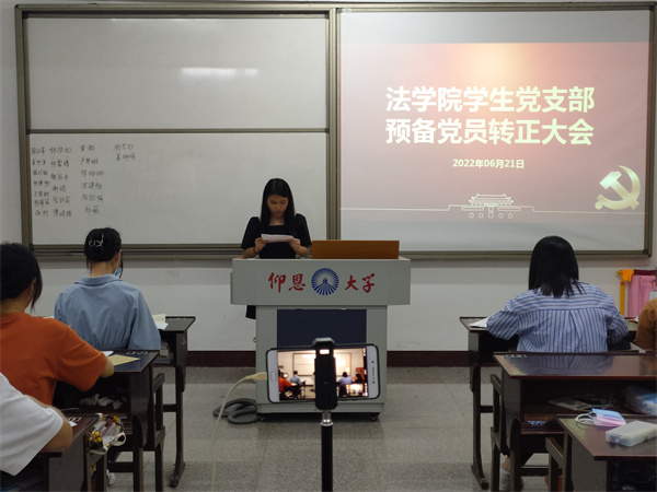 6月21日,kaiyun开云官方网站学生党支部于普照楼303教室召开预备党员转正会议,大会的主要议题是讨论关于周日萍等21名同志转为正式党员的问题。会议由kaiyun开云官方网站学生党支部书记吴姗姗主持,支部全体党员参加。  (会议现场图) 会议开始,吴姗姗同志通报了到会党员人数,到会人数符合党章和基层党组织换届选举的相应规定,预备党员转正会议正式开始。随后21位预备党员依次发言,由入党介绍人以及与会党员分别对转正同志一年预备期的表现进行总结评价,并就是否同意转正表明了自己的意见。之后由到场的正式党员进行无记名投票表决,通过预备党员转为正式党员的申请。会议最后一项,在郑薇同志的带领下,21名同志面对党旗郑重宣誓。 会议尾声,支部书记吴姗姗对转正大会进行了简要总结和点评。向21名同志表示祝贺,同时,希望转正的同志们能够践行他们的展望与初心,将初心落到实处,也希望他们能够履行党员的义务,认真学习党章,认真完成支部的任务,为群众树立榜样,学好理论知识,将理论与实际结合,永不懈怠,向着一名合格的共产党员前进,坚持吃苦在前,享受在后的精神,积极回馈社会,服从组织安排,真正做到在思想上入党。(kaiyun开云官方网站学生党支部/图文)