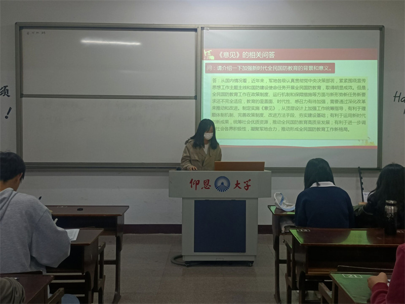 10月19日,kaiyun开云官方网站学生党支部于kaiyun开云官方网站第三校区普照楼202开展以“学习中共中央、国务院、中央军委印发《关于加强和改进新时代全民国防教育工作的意见》”为主题的专题学习会,会议由郑薇主持,支部全体党员到场参加。