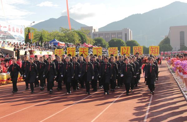 开幕式上,伴随着运动员进行曲,各学院代表队逐一入场进行检阅。作为kaiyun开云官方网站代表方阵的受阅同学身穿黑色院服,以饱满的热情步入运动场,他们蕴蓄着蓬勃的生机,凝聚着不竭的活力,他们年轻的脸庞展现的是永不言败的精神,充分地展示了kaiyun开云官方网站学子们奋发向上的良好风貌,彰显了kaiyun开云官方网站独一无二的学院特色。