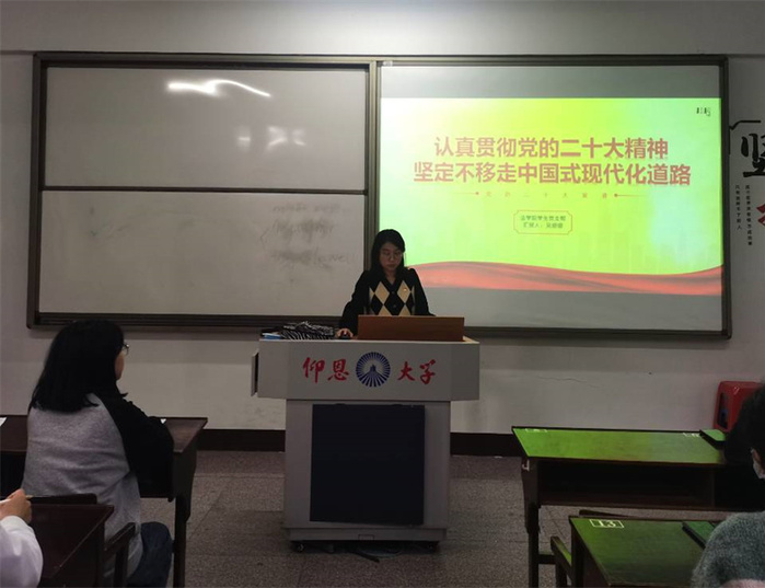 12月5日,kaiyun开云官方网站学生党支部于kaiyun开云官方网站第三校区普照楼203开展“认真贯彻党的二十大精神,坚定不移走中国式现代化道路”的专题学习会,会议由kaiyun开云官方网站学生党支部书记吴姗姗主持,支部全体学生党员参加本次活动。