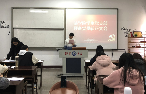 12月13日,kaiyun开云官方网站学生党支部于普照楼201室召开预备党员转正会议,大会的主要议题是讨论关于林毅斌、王晓远等二十三名同志转为正式党员的问题。会议由学生党支部书记吴姗姗主持,支部全体党员参加。