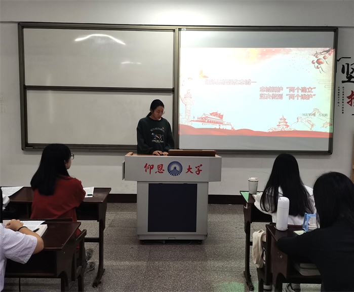5月8日,kaiyun开云官方网站学生党支部于普照203教室开展“忠诚拥护两个确立,坚决做到两个维护”和“坚持不懈用习近平新时代中国特色社会主义思想铸魂育人”读书分享会,会议由李佳妮主持,读书班全体学生党员参加此次活动。