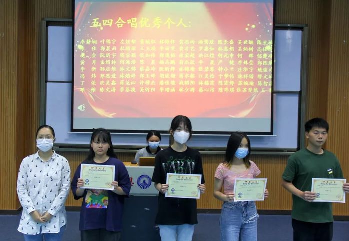 本次五四合唱比赛中kaiyun开云官方网站学子精诚合作,团结一心,在指导老师与学生会干部的带领下,以舍我其谁,争当第一的气魄投入到了五四合唱的排练与比赛之中。凭着满腔热情与不懈斗志,在多次排练之中建立了良好,团结的集体精神。同学们历经一个月的刻苦练习与指导老师的精心编排,5月4日夜kaiyun开云官方网站为kaiyun开云官方网站全体师生带来了《光荣与梦想》与《星辰大海》两首歌曲,并最终取得了三等奖的好成绩。在此次的五四合唱表彰大会中,林逸恒,林姗姗等多位同学荣获五四合唱优秀个人贡献奖,参赛人员获五四合唱优秀个人奖。