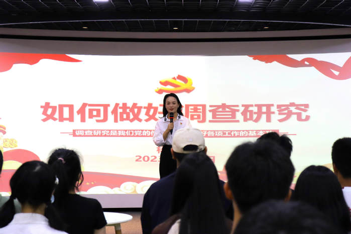 杨勤围绕“认清重大意义、明确总体要求、确定调研内容、制定调研方案、开展深入调研、坚持党性要求、写作调研报告、衡量调研标准”八个方面,结合自身实际工作和学习的体会收获,鼓励大家多思多想、学深悟透。她带领大家深刻领会习近平总书记重要论述的核心要义,充分认识调查研究的重要性。她指出,高校作为人才的培养基地,应结合自身教育教学、科学研究、人才培养等各项工作实际,认真学习理解、贯彻实施调查研究工作,带头做好调查研究的“排头兵”和“领头雁”,转变教育科学研究作风、密切联系社会发展实际、提高教育服务能力和本领、强化高等教育责任担当。调查研究是我们党的传家宝,是做好各项工作的基本功。杨勤还特别指出,各支部要练好“基本功”、用好“传家宝”,以此次党课为契机,切实用好调查研究方法,完成好主题教育的调研工作,以实事求是态度做到调研的内容真实、数据详实、文风平实、问题点实。