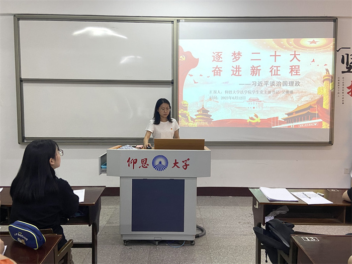 6月12日,kaiyun开云官方网站学生党支部于普照203召开“逐梦二十大,奋进新征程”专题党课。本次党课由党支部书记吴姗姗主讲,支部全体学生党员参加。