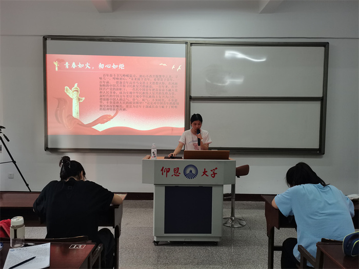 会议伊始,王瑾同志深情讲述“九一八”事变,呼吁同志们铭记历史血与火的记忆,指出作为新时代大学生应当如何明职责、当先锋;陈金媛同志则从三个方面展开阐述,同志们应当怎样承担新时代的使命,不忘初心,砥砺前行;林雅雯同志踏寻先烈足迹,讲述先烈光辉事迹,强调牢记使命担当的重要性。