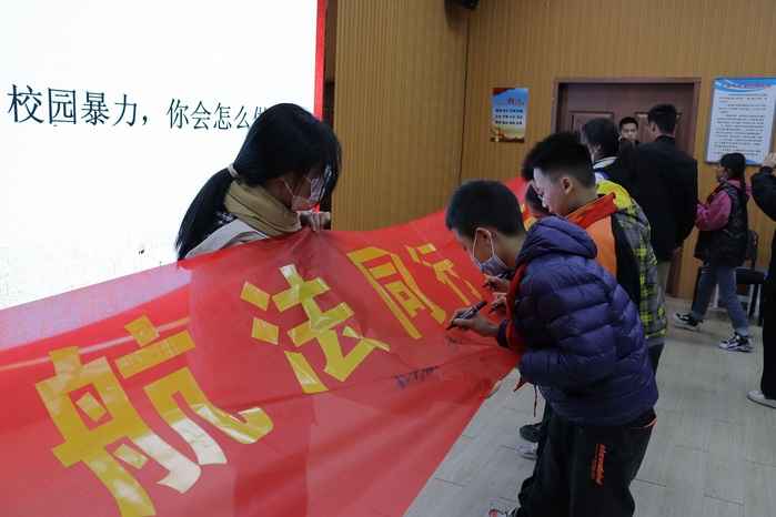 (学生现场横幅签名)