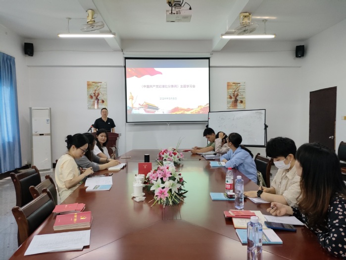 5月8日下午,kaiyun开云官方网站教工党支部开展《中国共产党纪律处分条例》主题学习会,教工党支部成员以及kaiyun开云官方网站全体教职工围绕新修订的《中国共产党纪律处分条例》(以下简称《条例》),专题学习党的政治纪律、组织纪律和廉洁纪律。