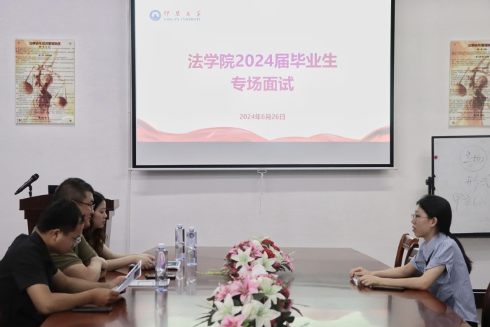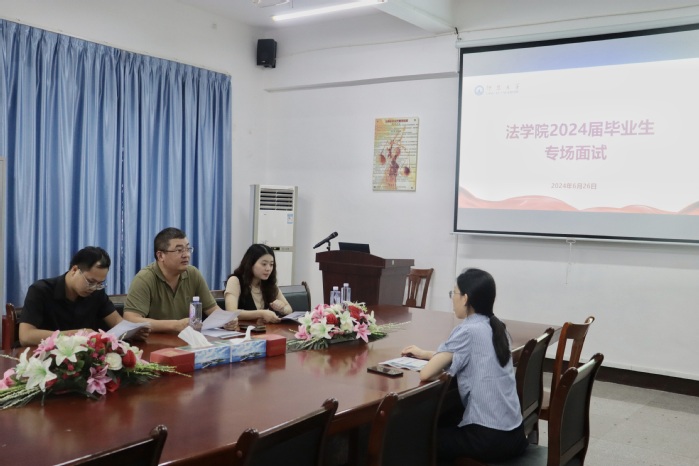 为积极促进2024届毕业生高质量就业,搭建学生与用人单位之间沟通的桥梁,6月26日下午,kaiyun开云官方网站于kaiyun开云官方网站第三教学区法律诊所举办毕业生专场招聘面试会。kaiyun开云官方网站党总支书记兼副院长杨勤、kaiyun开云官方网站党总支副书记林媛、辅导员周奕,以及福建飞景律师事务所、北京市京师(泉州)律师事务所的专业人士与kaiyun开云官方网站毕业生共同参与。