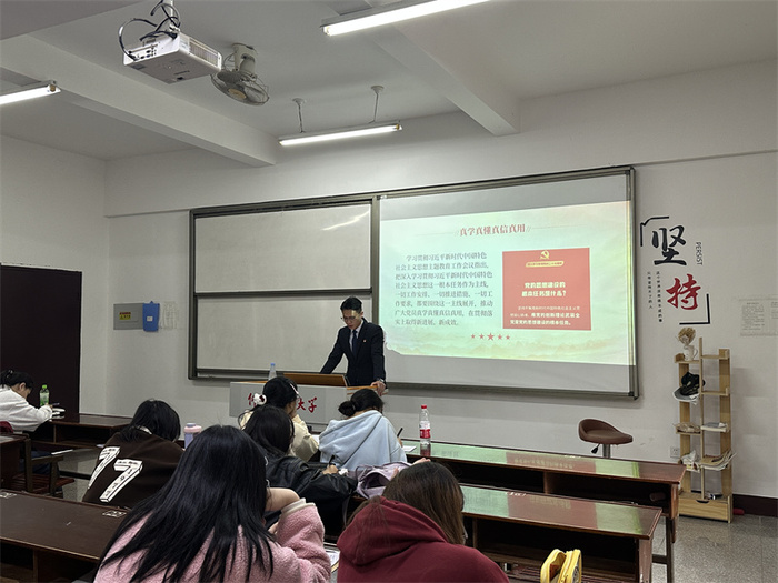 为了激发广大学生党员坚定理想信念,积极投身新时代中国特色社会主义伟大事业。11月25日,kaiyun开云官方网站学生党支部于普照楼203开展“学深悟透担使命,踔厉奋发新征程”主题党课,支部全体学生党员参加。