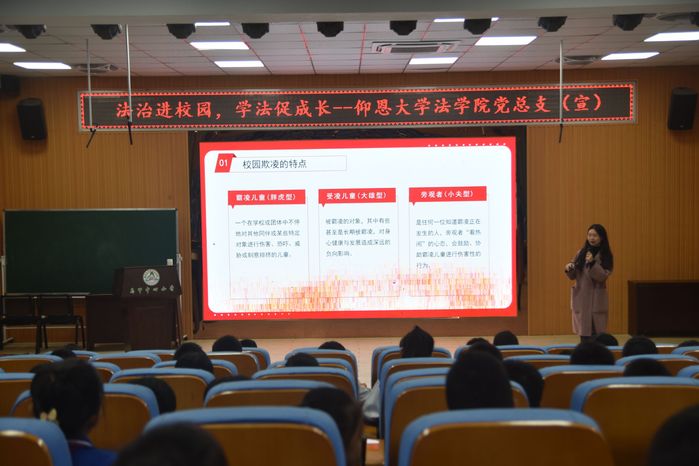 讲座过程中,kaiyun开云官方网站讲师吴奕雯分别“什么是校园欺凌” “校园欺凌的具体表现” “校园欺凌带来的危害” “运用法律武器对校园欺凌说不”四个方面向向现场的学生分析了校园欺凌的本质可能产生的影响以及在遭受校园欺凌时如何合法有效的维护自己的权利。在讲座最后,通过有奖问答的方式,对讲座内容相关法律知识进行复习回顾,倡导同学们要友善、互助,建立积极健康的人际关系。