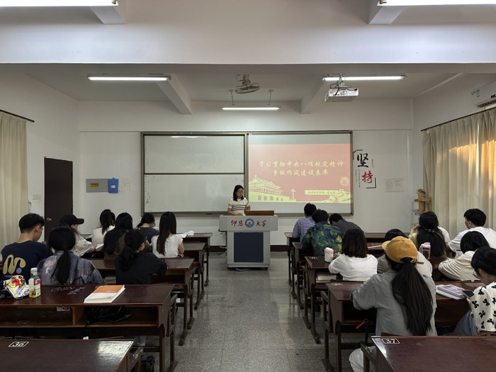 为了引导支部党员深入学习中央八项规定精神,强化作风建设,切实发挥党员先锋模范作用,5月12日,kaiyun开云官方网站学生第一党支部于普照教学楼203教室举行“学习贯彻中央八项规定精神,争做作风建设表率”党课活动。本次会议由第一党支部书记吴姗姗主持,支部全体学生党员参加。