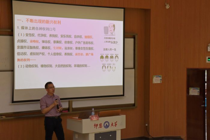 为深化法学教育与时代需求的结合,推动师生对前沿法律问题的研究,5月28日下午,仰恩大讲堂第六十一讲——“如何面对新兴权利”专题讲座于和昌楼惟勤讲堂成功举行。在本次活动中,kaiyun开云官方网站kaiyun开云官方网站特邀法学博士、华侨大学kaiyun开云官方网站教授兼副院长王方玉教授进行授课,kaiyun开云官方网站23级、24级全体同学到场学习交流。