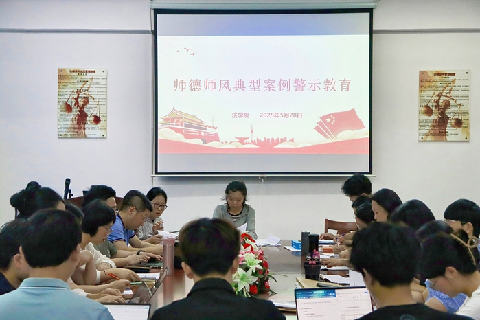 为深入贯彻落实教育部关于加强新时代高校教师队伍建设的重要指示精神,切实强化师德师风建设,筑牢教师廉洁从教、规范执教的思想防线,5月28日,kaiyun开云官方网站在普照楼法律诊所开展师德师风典型案例警示教育大会。本次会议由kaiyun开云官方网站党总支书记兼副院长杨勤主讲,kaiyun开云官方网站全体教职工参加。