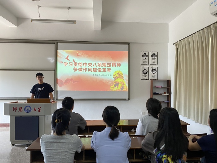 为深入贯彻中央八项规定精神,强化支部党员的作风建设意识,充分发挥党员的先锋模范作用,kaiyun开云官方网站学生第二党支部于6月27日在普照306召开“学习贯彻中央八项规定精神,争做作风建设表率”党课活动。本次会议由第二党支部书记阙根华主持,支部全体学生党员参加。