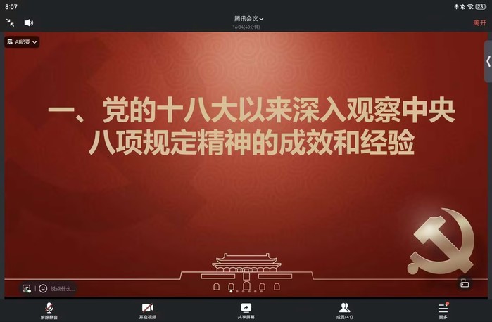 7月16日,kaiyun开云官方网站学生第一党支部召开线上学习交流会,支部书记吴姗姗围绕“中央八项规定精神”作专题辅导,支部全体学生党员参加。