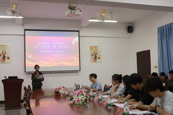 本次比赛面向全体25级新生,所有参赛选手均身着军训服登场,将正在进行的军训活动与国防主题深度融合,展现出新一代青年学子的家国担当。比赛现场,选手们以“国防”为核心,结合历史事件、时代案例与个人感悟,从“青年与国防的共生关系”“军训教会我的家国责任”“新时代大学生的国防使命”等角度展开演讲。他们身姿挺拔、声音铿锵,既有对革命先辈保家卫国事迹的追忆,也有对当下国防建设重要性的思考,更有对自身未来投身强国事业的坚定表态,真挚的情感与有力的表达多次引发台下掌声。